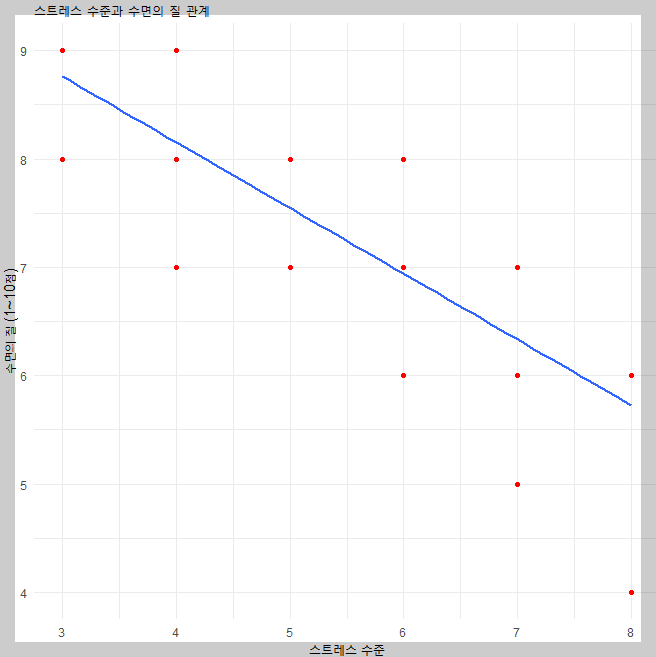 labs(title = "스트레스 수준과 수면의 질 관계",
